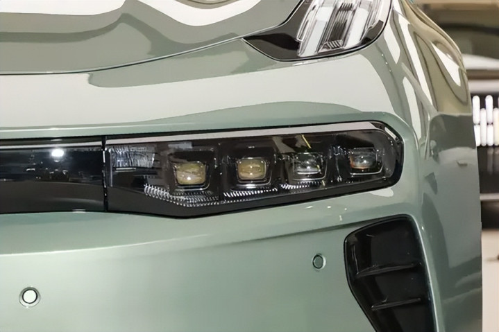 前脸仍以低趴宽体姿态呈现,但细节更具层次。中网下方采用全新贯穿式进气格栅,替代了旧款的分段式梯形结构,使前脸更具整体感,同时提升气流导向效率。两侧三角形导流口尺寸略有扩大,起到空气分流与冷却双重作用,也让视觉上更具运动张力。分体式大灯依旧是标志性设计,上方为锐利的日间行车灯,下方为矩阵式远近光灯,光源均为LED矩阵模块,照射范围更广,夜间识别效果。中间的封闭区域简化了线条,没有多余装饰,体现出现代电动车的简洁风格。