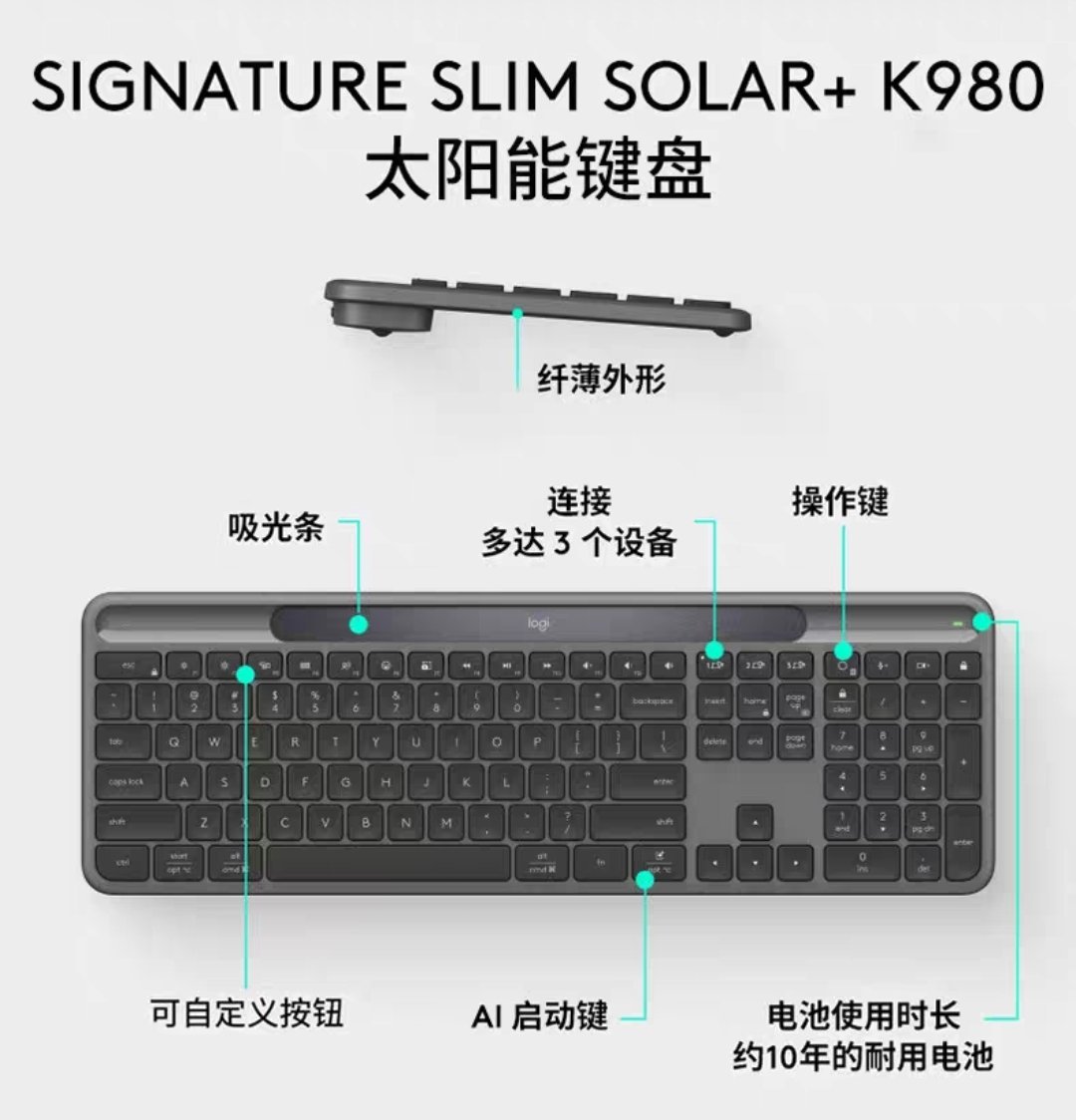 罗技给出自己的答案——Signature Slim Solar+ K980光能键盘