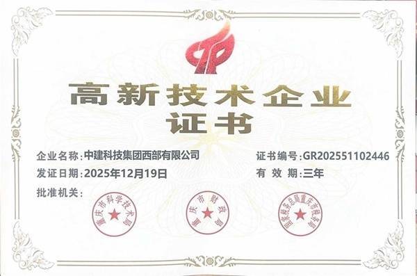 人民网重庆3月30日电 (记者胡虹)日前,中建科技集团西部有限公司成功通过国家高新技术企业认定。国家高新技术企业认证是由国家科技部、财政部、税务总局联合组成的工作领导小组认定的国家级资质认证平台,其认定需经过核心知识产权、成果转化能力、企业发展等多维度考评,获评企业可享受政府资金奖励、税收减免、人才购房补贴等专项政策支持,是衡量企业创新水平的重要标杆。
